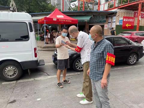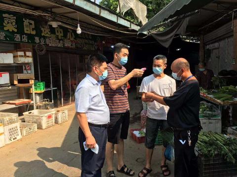連晴高溫的重慶,無空調的市場,無遮擋的門崗考驗著觀農貿員工。8月4日氣象臺報40℃,悶熱的市場人來人往,員工們汗流浹背的忙前忙后,測體溫、驗碼、檢查來往人員口罩佩戴、貨物擺放、登記溯源.....10時,公司領導班子在喻東董事長的帶領下慰問了市場員工。領導們將防暑藥、蘇打水發放到戰斗在57℃高溫下的一線職工和從業人員手中,殷切囑咐要注意防嗮不要中暑了。同時領導們對市場的消防安全和疫情防控工作進行了檢查。當天,公司決定援助市場各門崗,扎緊入口關。機關干部、黨員紛紛報名,5日清晨7時,各支援工作小組人員已戰斗在晨光中......